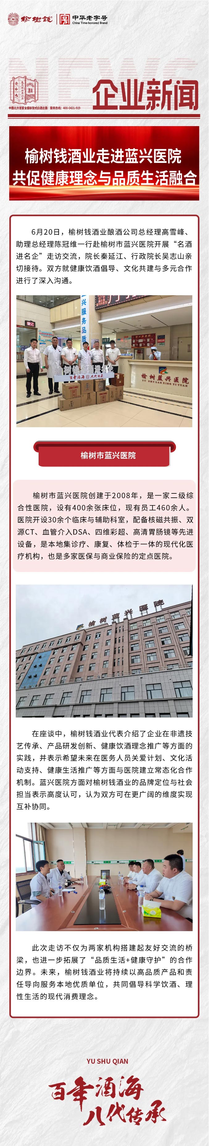 榆樹錢酒業走進藍興醫院丨共促健康理念與品質生活融合